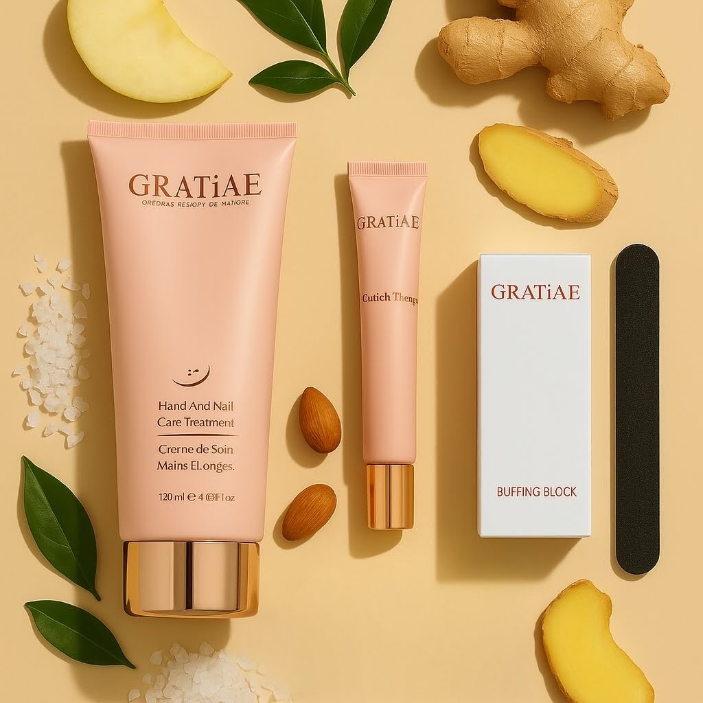 オーガニック認証のアーモンドオイル、ホホバオイル、カラスムギ穀粒工ス、グラティエ独自の温水などの天然成分がたっぷり配合のハンドトリートメント。クリーミーで滑らかなテクスチャーがベタつかず素早く吸収されます。キューティクルオイルでしっかり指周り乾燥を防ぎ、肌がずっとしっとり、もっちり。さっとお手入れができる、シンプルでモードなネイルファイルキットつき。