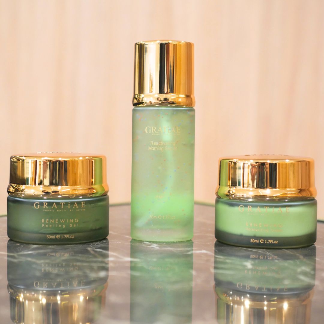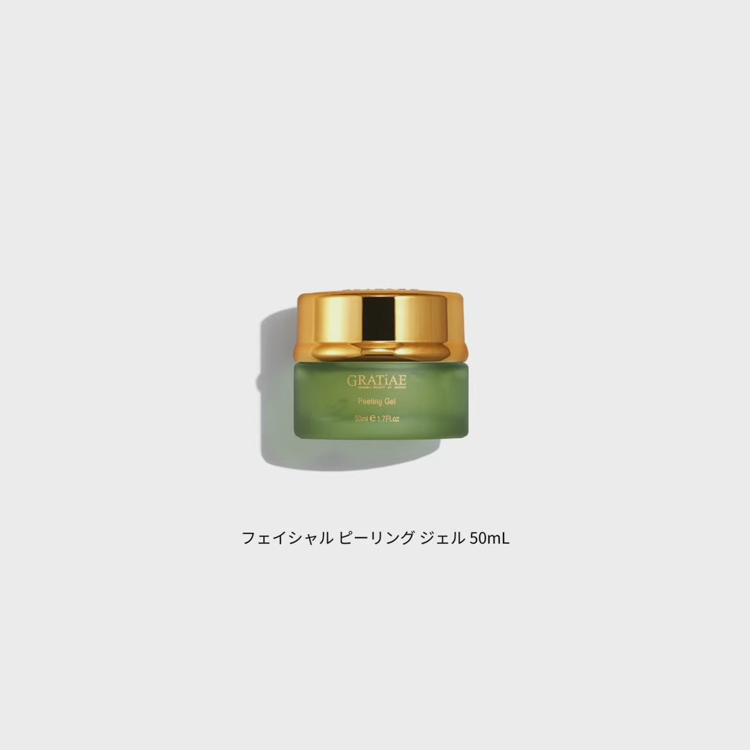 肌のくすみや古い角質を取り除き、ハリと輝きを引き出す特別な3点セットです。ピーリングジェルは余分な皮脂や角質にアプローチし、サーモミネラルウォーターとカラスムギエキスが肌を整えます。朝用セラム(美容液)は、ギンバイカ葉エキスとアルファルファエキスが肌に潤いとハリを与え、モイスチャークリーム(保湿クリーム)が保湿しながら、柔らかく若々しい肌に仕上げます。